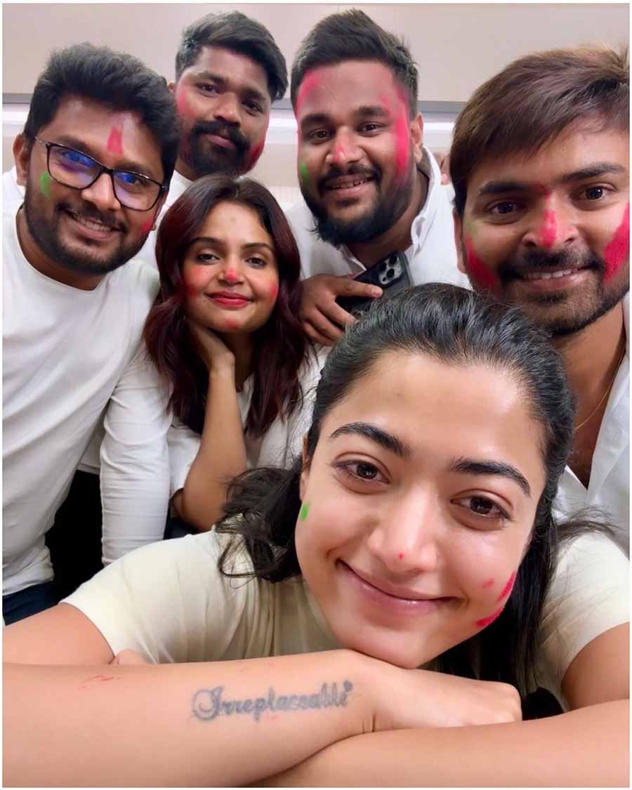 Animal actress Rashmika Mandanna dropped pictures from the set of her upcoming movie. "It’s a working holi for us.. but I hope you all are playing safe holi and enjoying yourselves," the actress wrote alongside a picture with the crew of her next project.