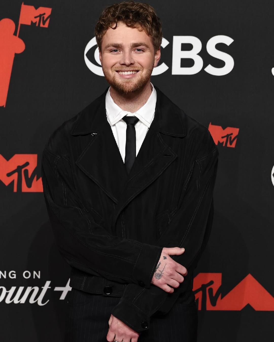 American singer-songwriter Alex Warren sported an all black ensemble—-a double breasted jacket worn over a white shirt paired with trousers—at the MTV Video Music Awards.