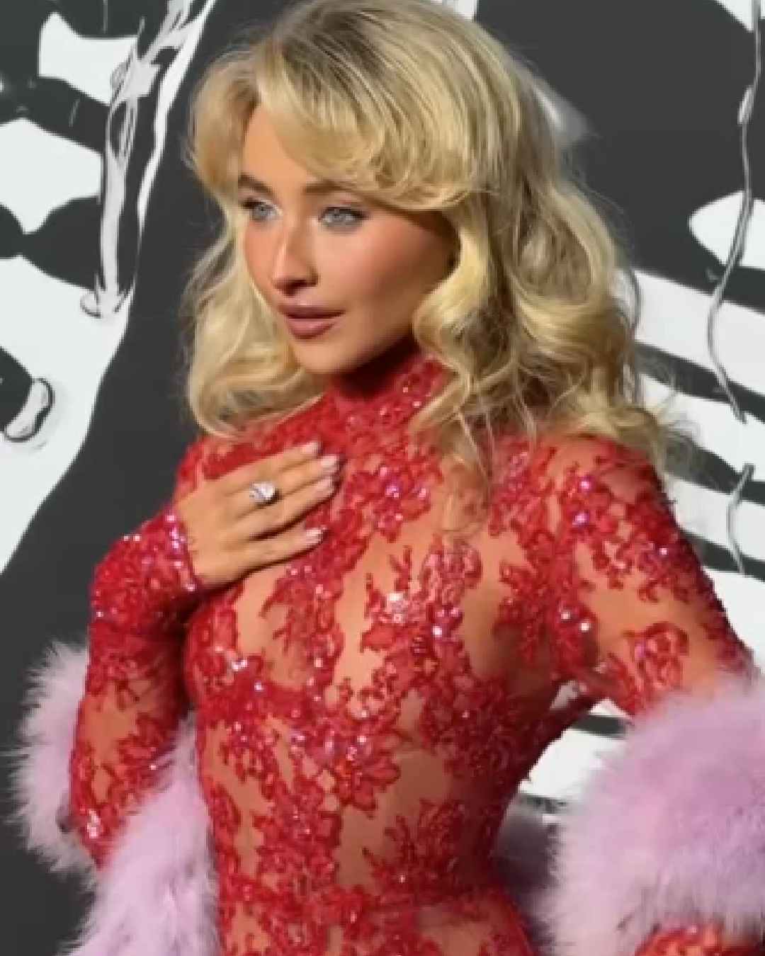 Sabrina Carpenter, who took home the Best Pop Artist award, turned heads in a red sequinned lace gown.