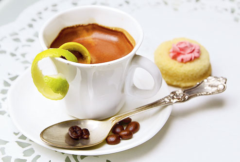 The cup: We discovered that lemon is to coffee what salt is to caramel. This coffee is a straight shot of espresso — with no milk or sugar — served with a slice of lemon that you have to squeeze. A drop or two is enough to tone down the espresso’s bitterness. The lemony flavour adds a special punch.