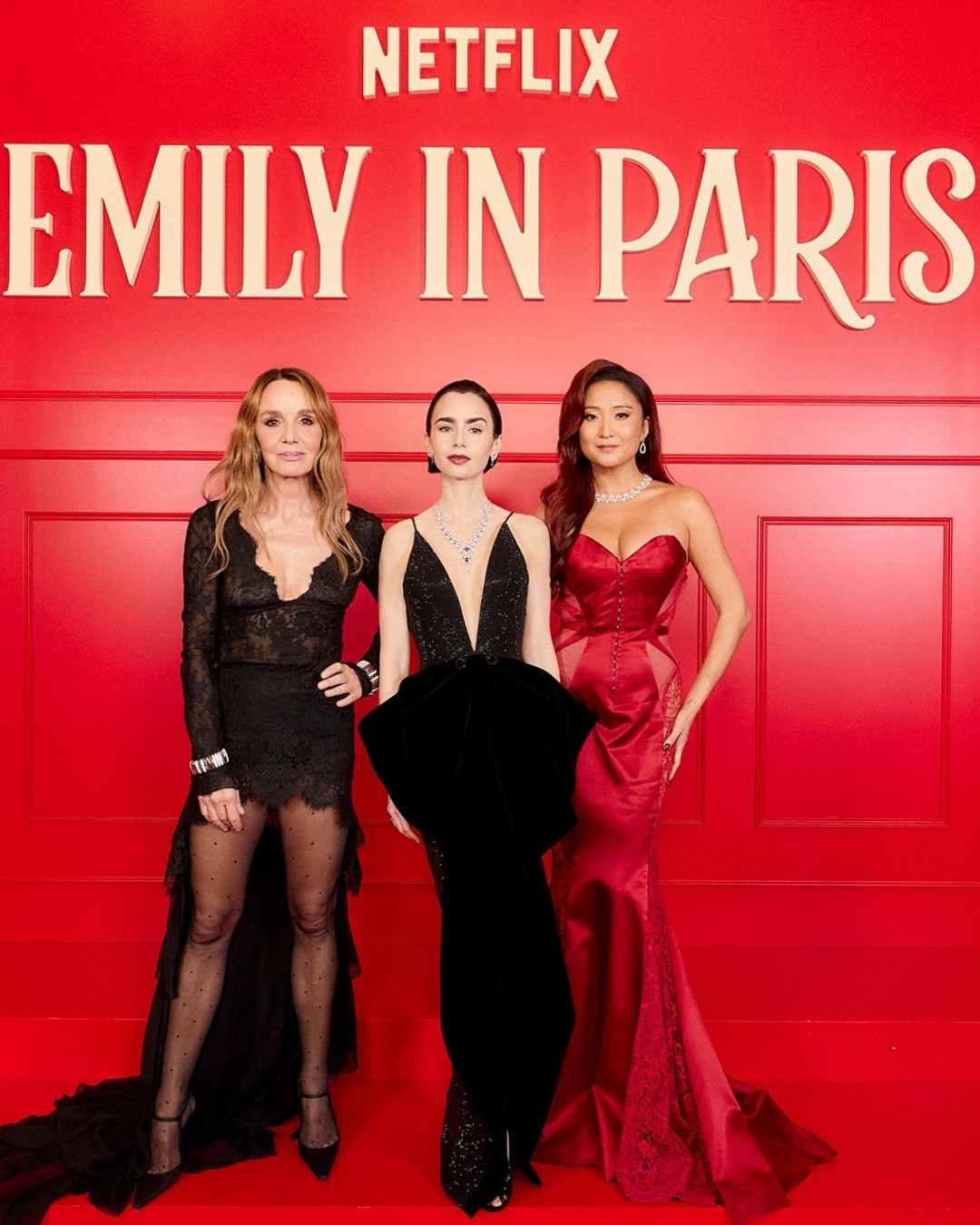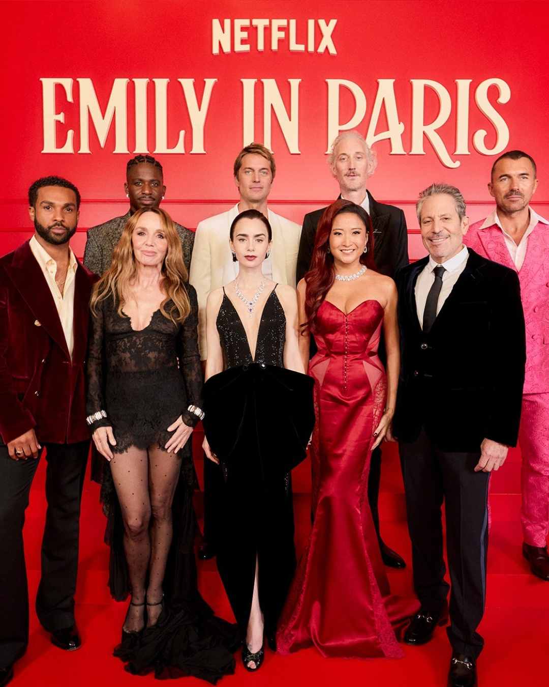 Emily in Paris actors Lily Collins, Ashley Park, Lucas Bravo and Camille Razat made head-turning appearances at the premiere of the Netflix show’s Season 5 in Paris on Monday.