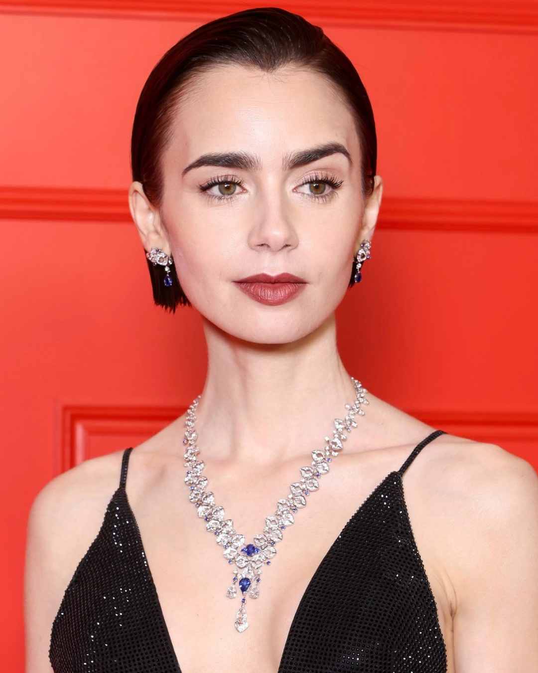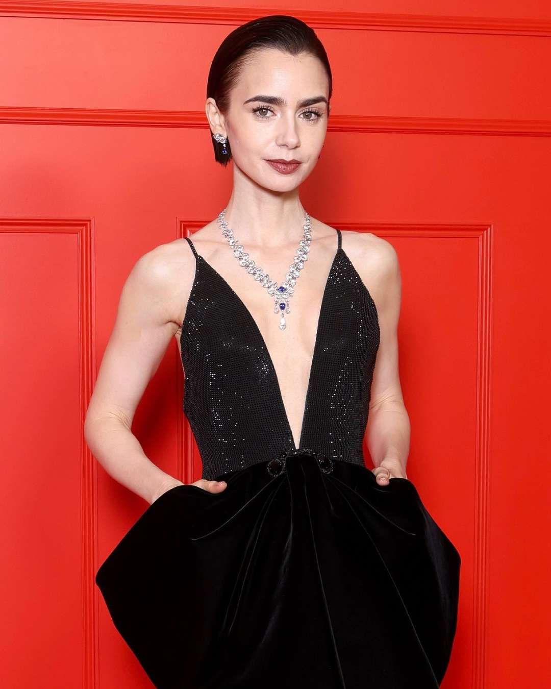 Lily shared the frame with actress Ashley Park and Philippine Leroy Beaulieu at the event. While Ashley dazzled in a red, strapless dress featuring a structured bodice with button details, Philippine opted for a black lace dress with a deep V-neck and a high-low hemline.