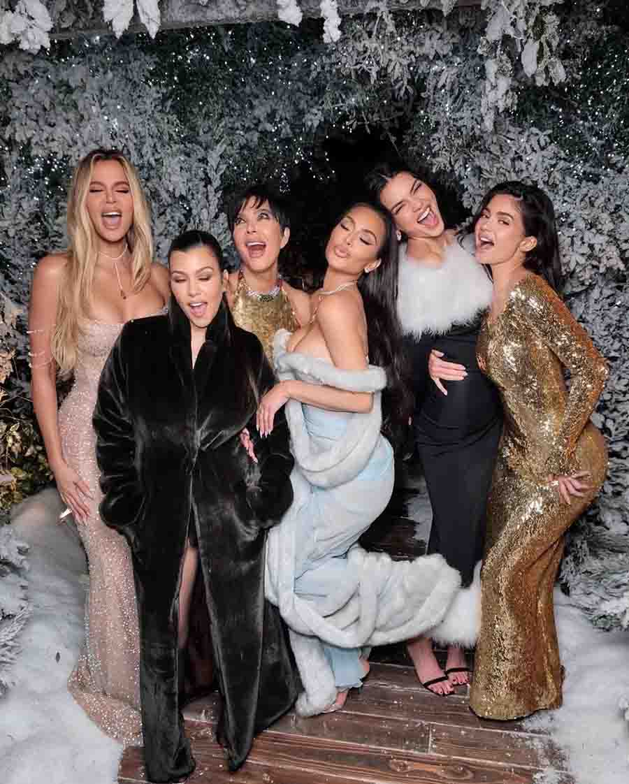 (L-R) Khloe Kardashian, Kourtney Kardashian, Kris Jenner, Kim Kardashian, Kendall Jenner and Kylie Jenner enjoyed themselves at a winter-themed party.