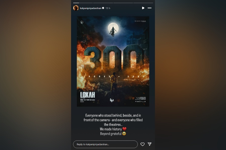 Actress Kalyani Priyadarshan took to her Instagram stories and wrote, “Everyone who stood behind, beside and in front of the camera, and everyone who filled the theatres… We made history. Beyond grateful.”