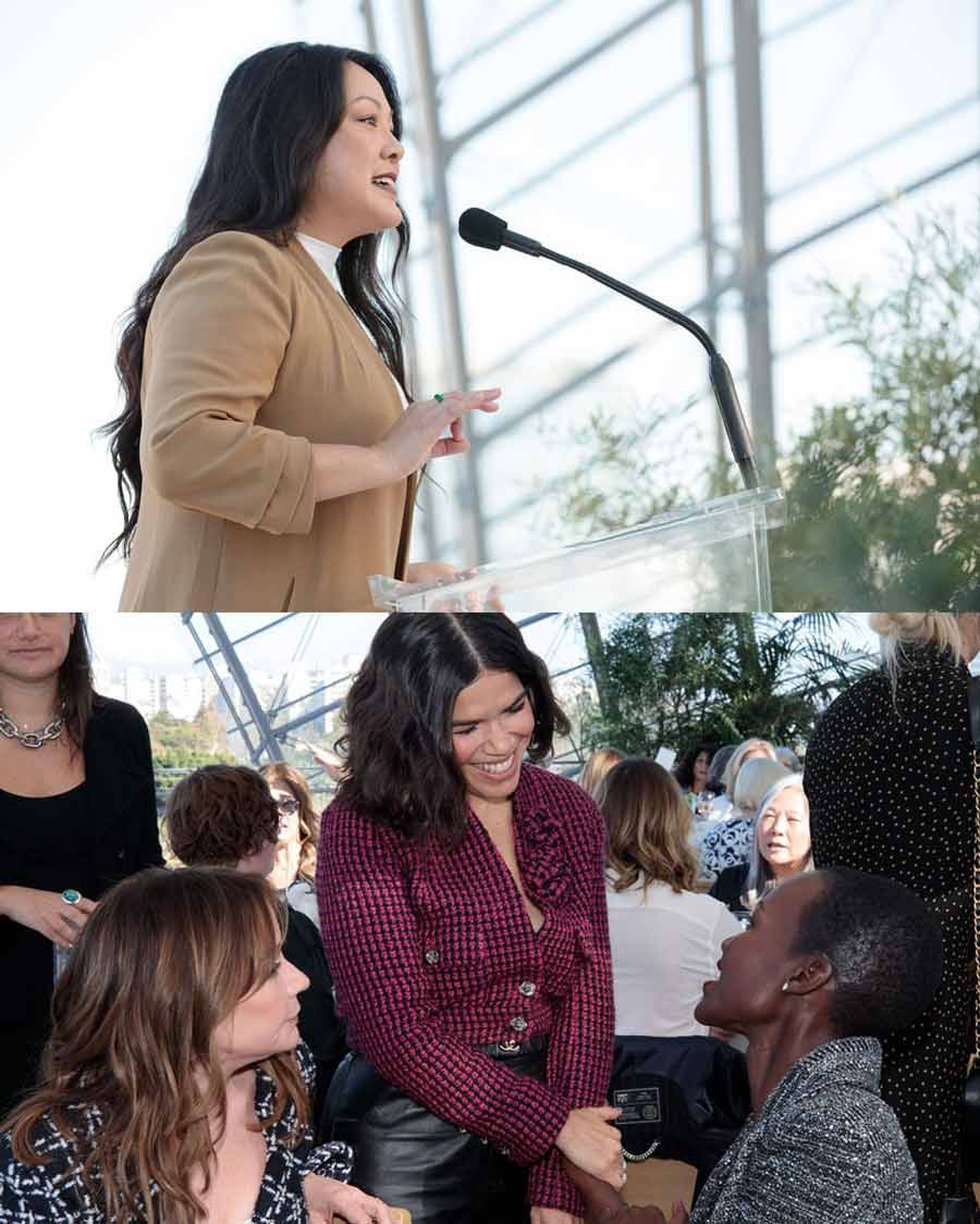 (Top) Erica Eng, who directed the short films Americanized and The Ghost, was the recipient of a grant this year. (Bottom) America and Lupita were spotted chatting together with producer Kristie Macosko Krieger, who is known for her work with Steven Spielberg.