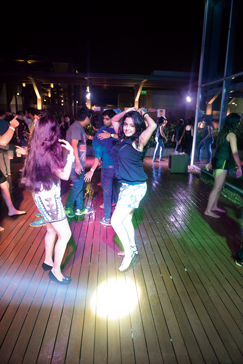 People who stayed away from the pool trickled into the rain dance section that had a mixed playlist of romantic songs like Love Me Like You Do to party numbers like Sooraj dooba hai, Birthday Bash and Bailando.