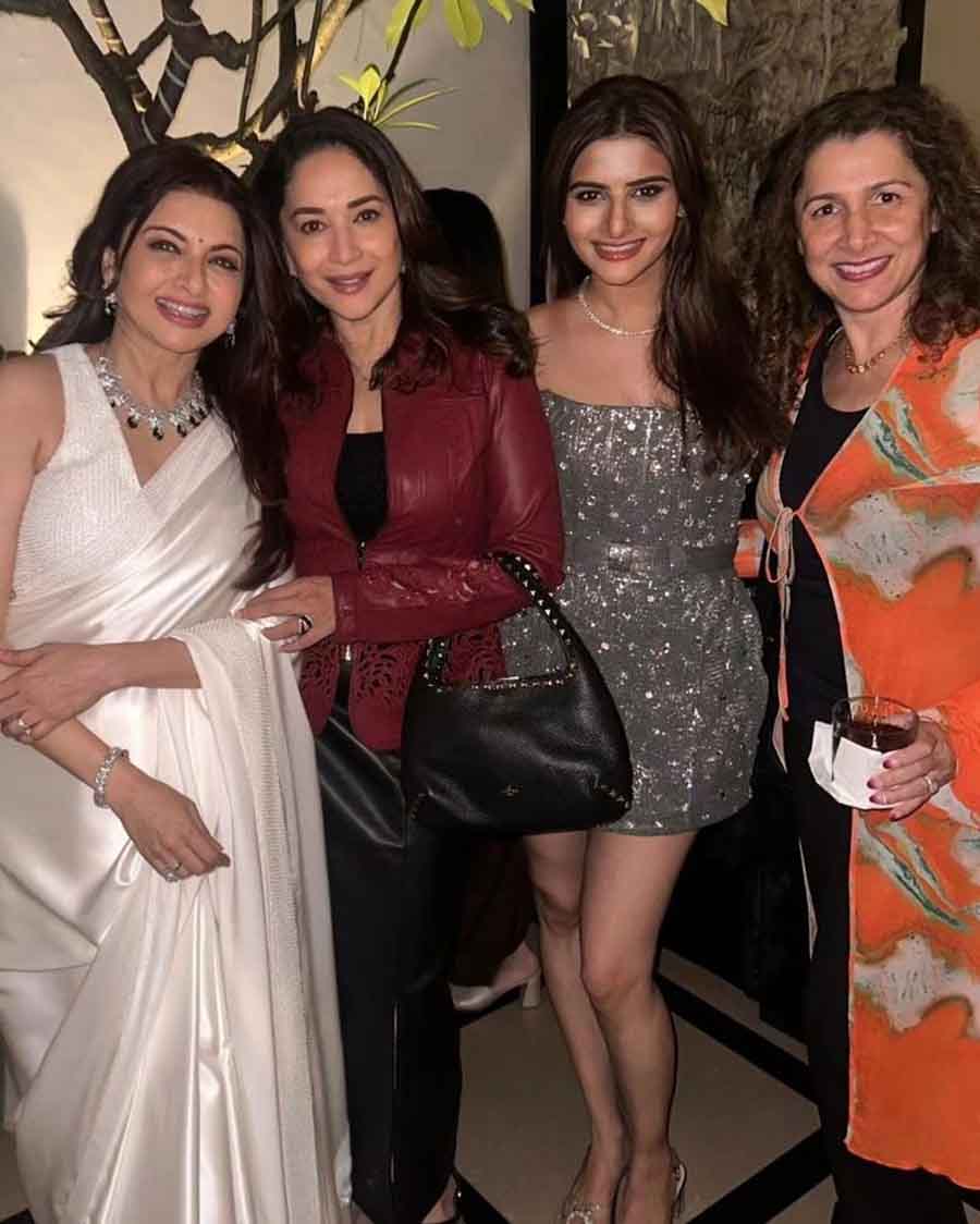 Madhuri Dixit, Nushrratt Bharuccha and Sanjay Kapoor were among the Bollywood celebrities who attended Maine Pyar Kiya actress Bhagyashree’s 55th birthday bash in Mumbai. Here’s a look at some moments from the celebration.
