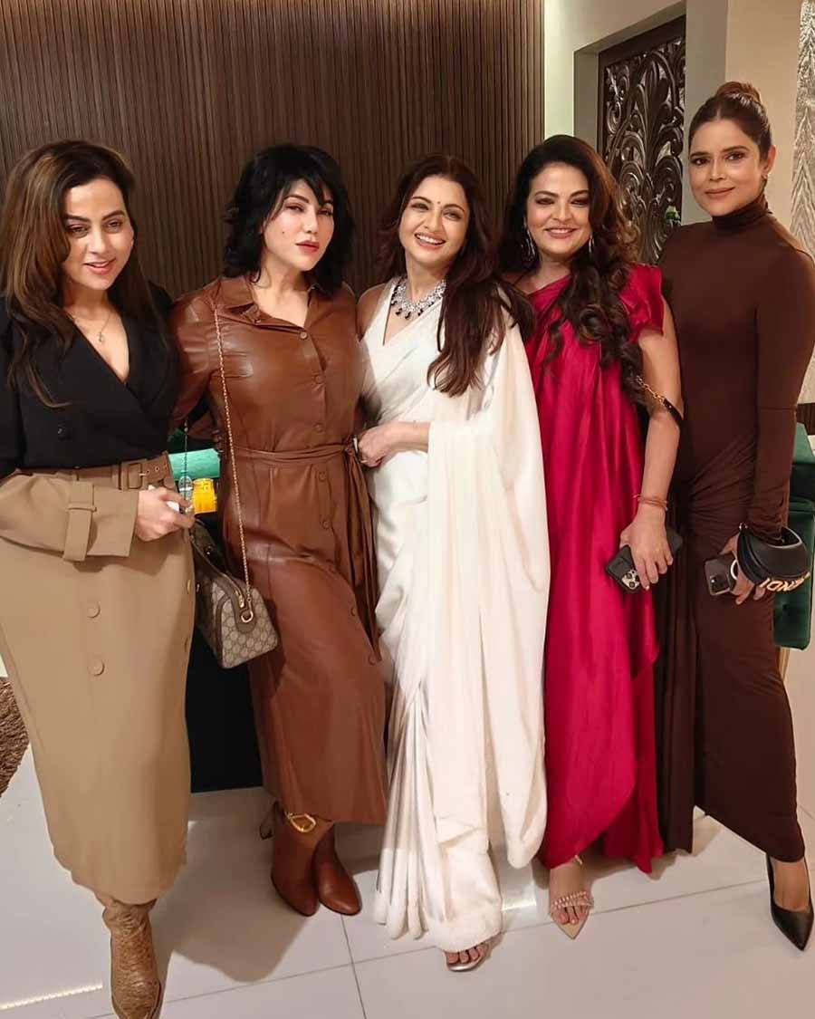 Actor Ronit Bose Roy’s wife Neelam Bose Roy was also present at the party. She looked stunning in a brown high-neck column gown.