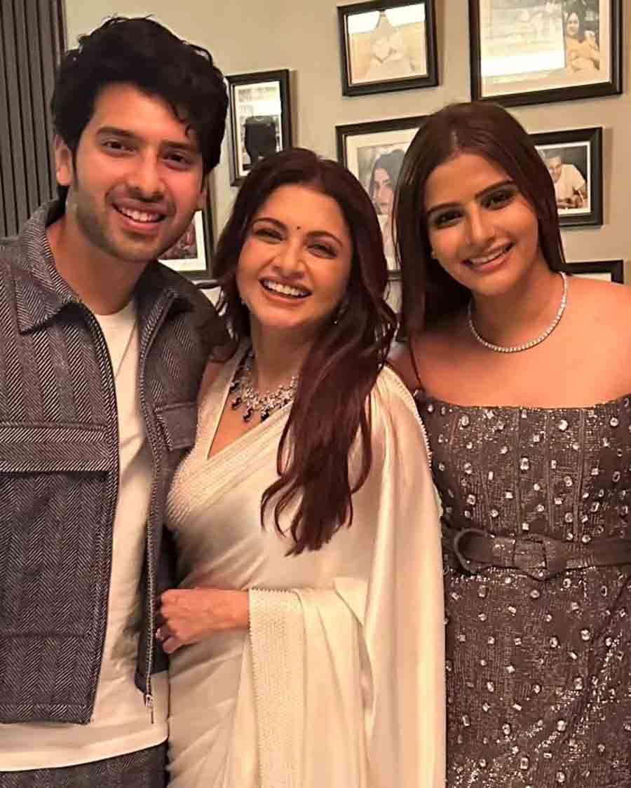 Singer-songwriter Armaan Malik posed with Bhagyashree and her daughter Avantika. While Armaan was nattily dressed in a grey jacket worn over a white t-shirt, Avantika rocked a glittery grey dress adorned with crystals and a bow-shaped belt at the waist.