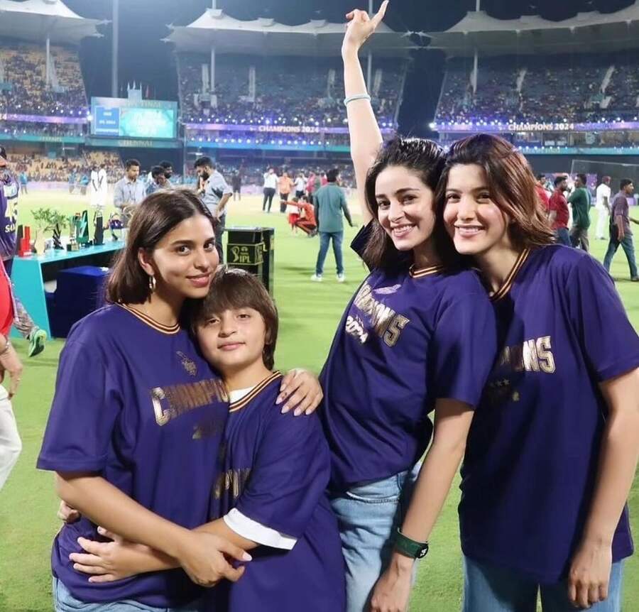 Best friends Ananya, Shanaya and Suhana were all smiles as they posed with Shah Rukh’s youngest son AbRam while celebrating KKR’s victory.