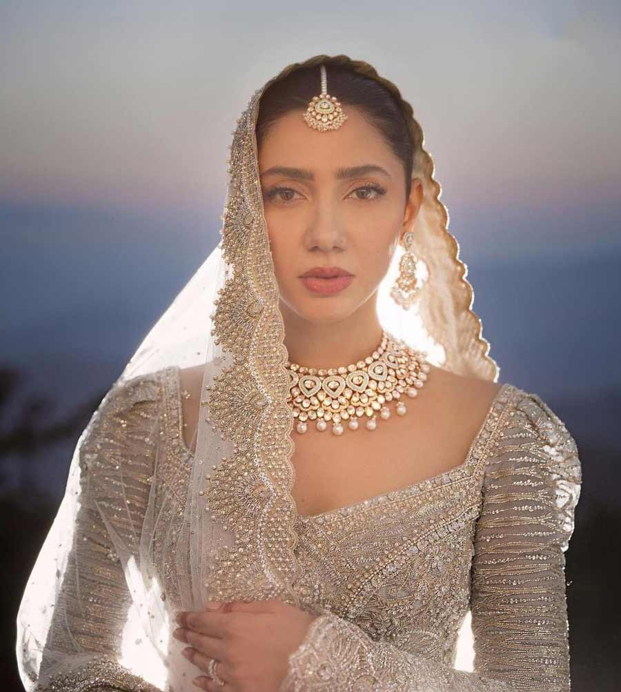 Mahira looked resplendent in minimal makeup and a diamond necklace paired with matching danglers and maangtika.