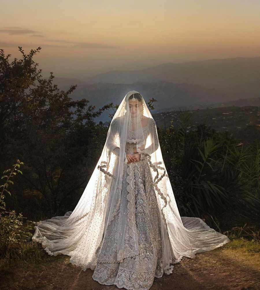 The Raees actress wore a custom-made Faraz Manan lehenga with a trailing veil in ice blue.