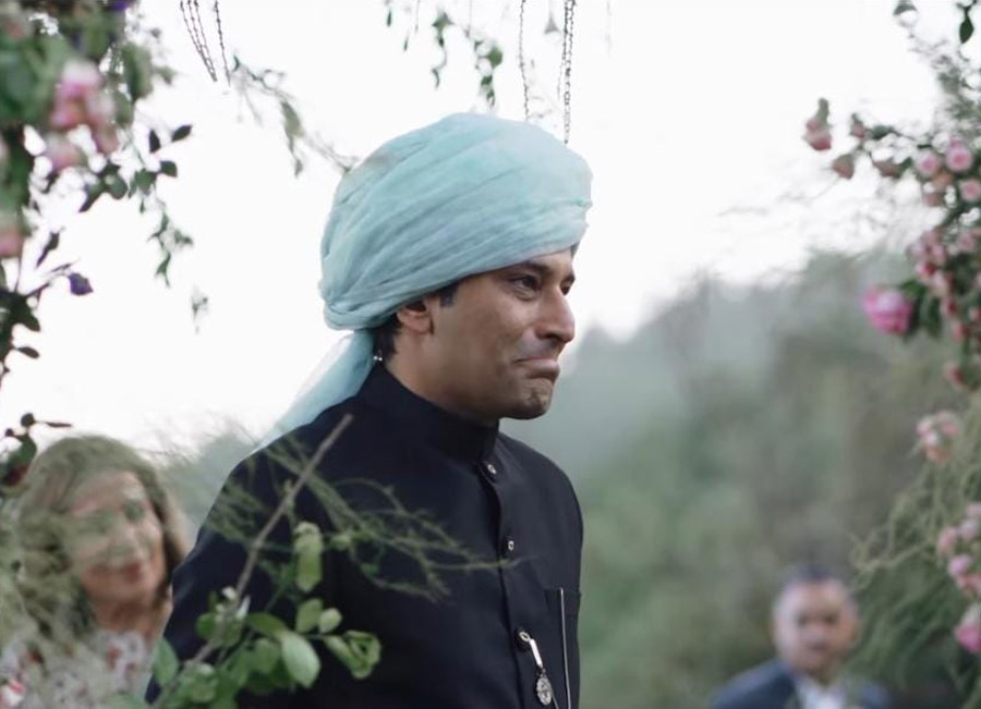 Groom Salim Karim sported a no-frills traditional suit and a blue safa.
