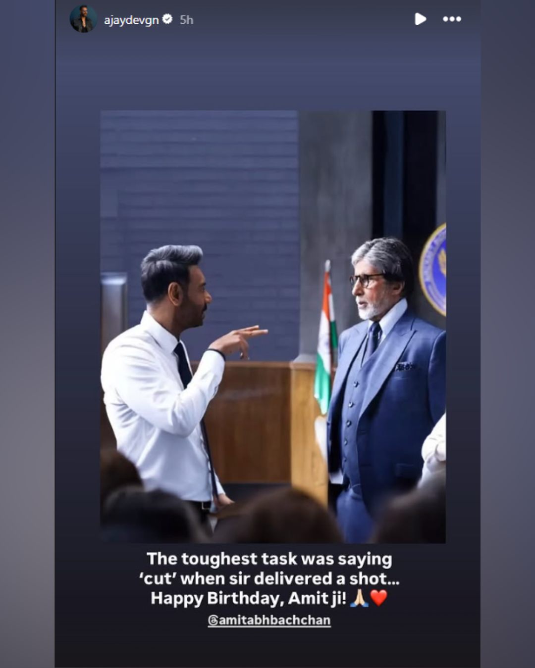 Actor Ajay Devgn recalled his experience of directing Bachchan in the film Runway 34. “The toughest task was saying ‘cut’ when Sir delivered a shot… Happy Birthday, Amit Ji,” Devgn wrote.