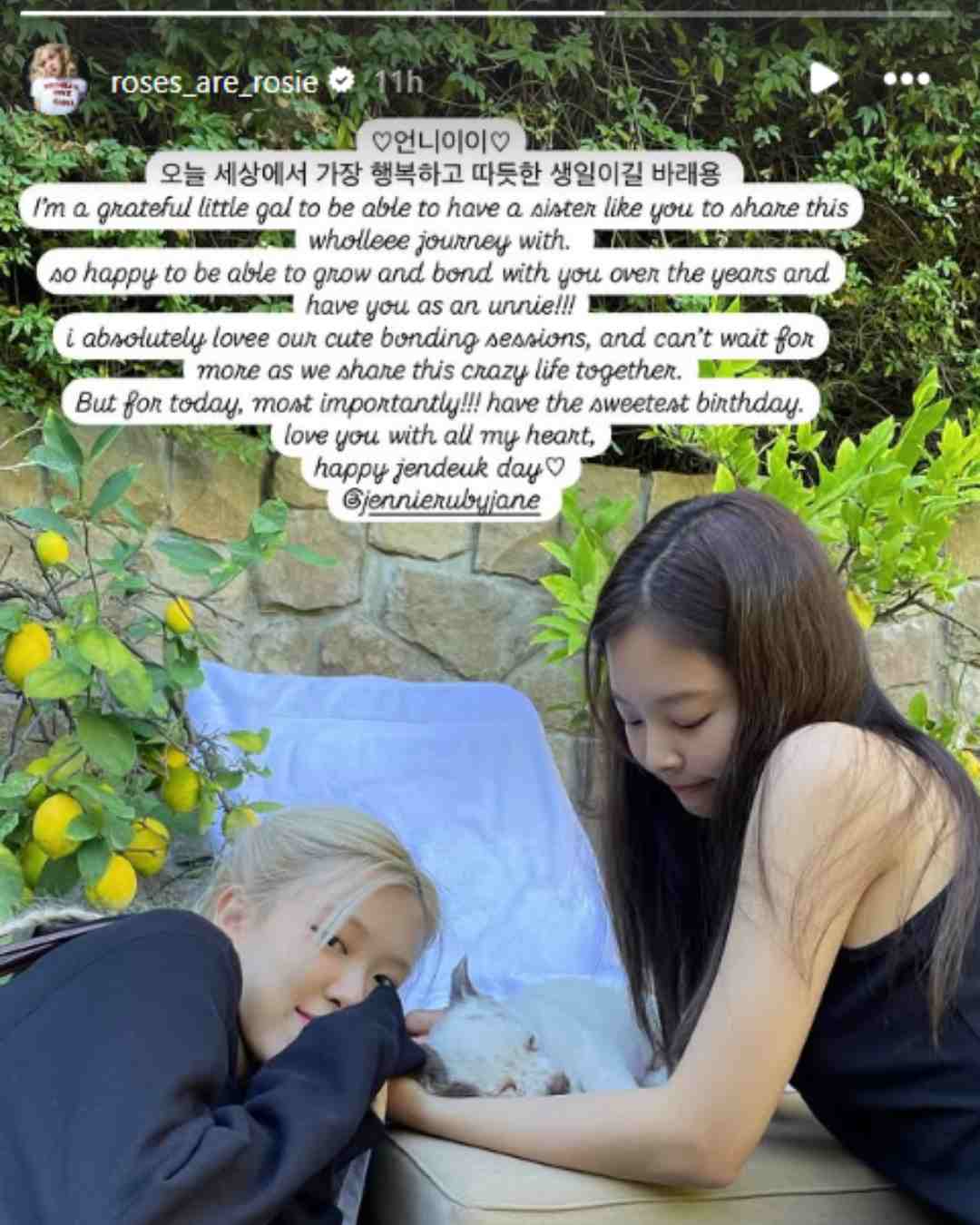 Jennie’s bandmate Rose wished her happy birthday with a picture of themselves petting a dog.