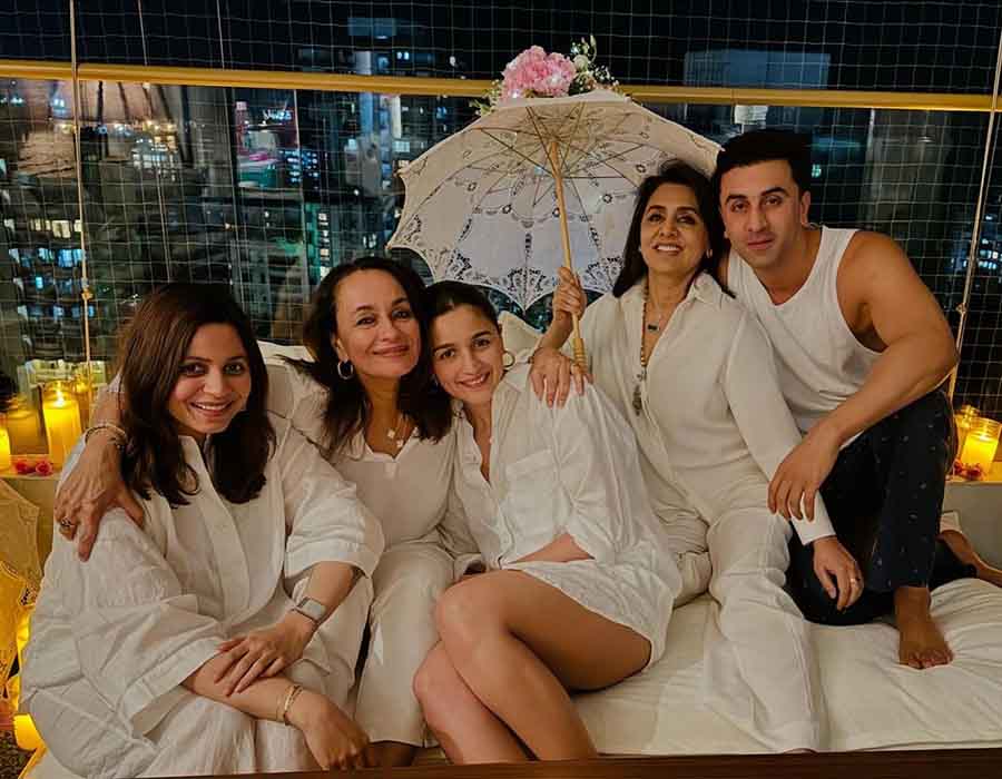 Alia Bhatt shared a photo featuring her mother Soni Razdan, elder sister Shaheen Bhatt, mother-in-law Neetu Kapoor and husband Ranbir Kapoor. They were all dressed in white outfits and posed on a balcony decorated with candles. “Precious moments with my precious ones,” Alia captioned her post.