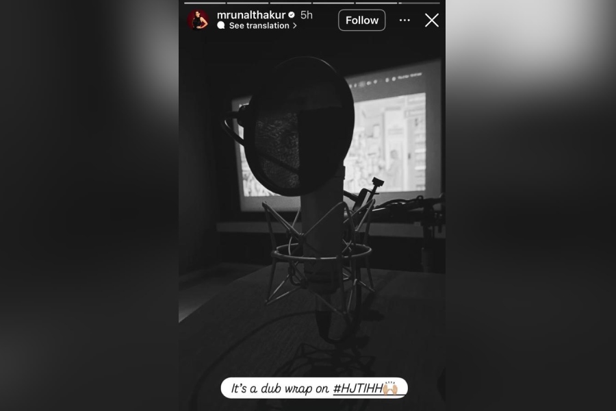 Sharing a behind-the-scenes monochrome photo from the sets of a dubbing studio on her Instagram story, the actress wrote, “It’s a dub wrap on #HJTIHH.”