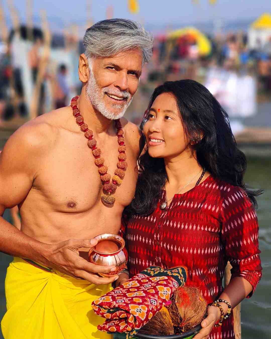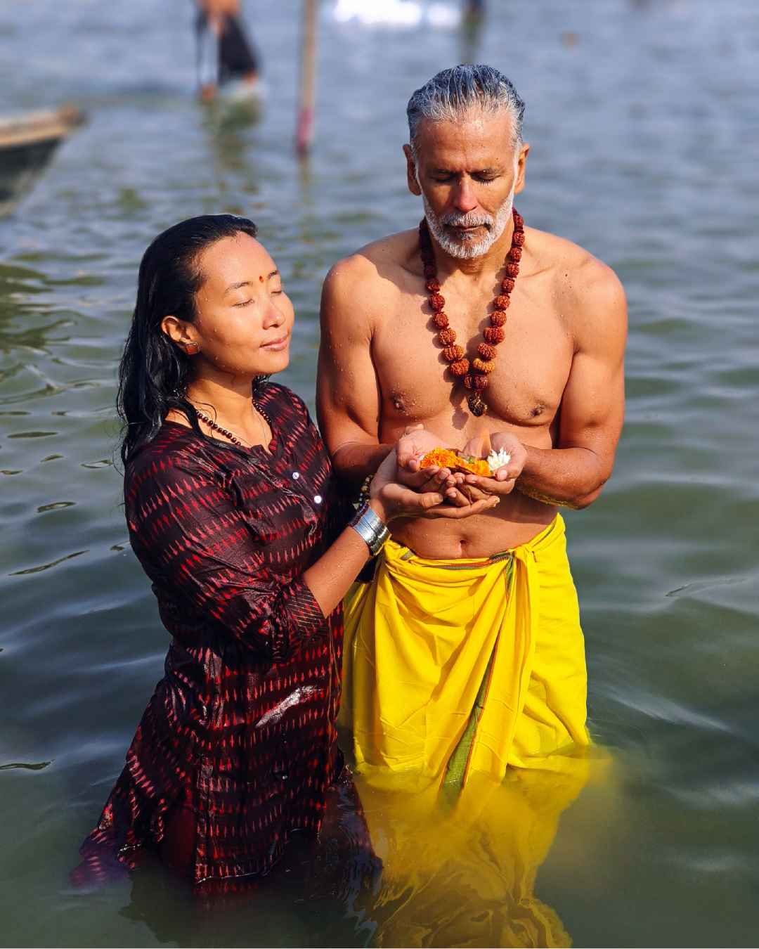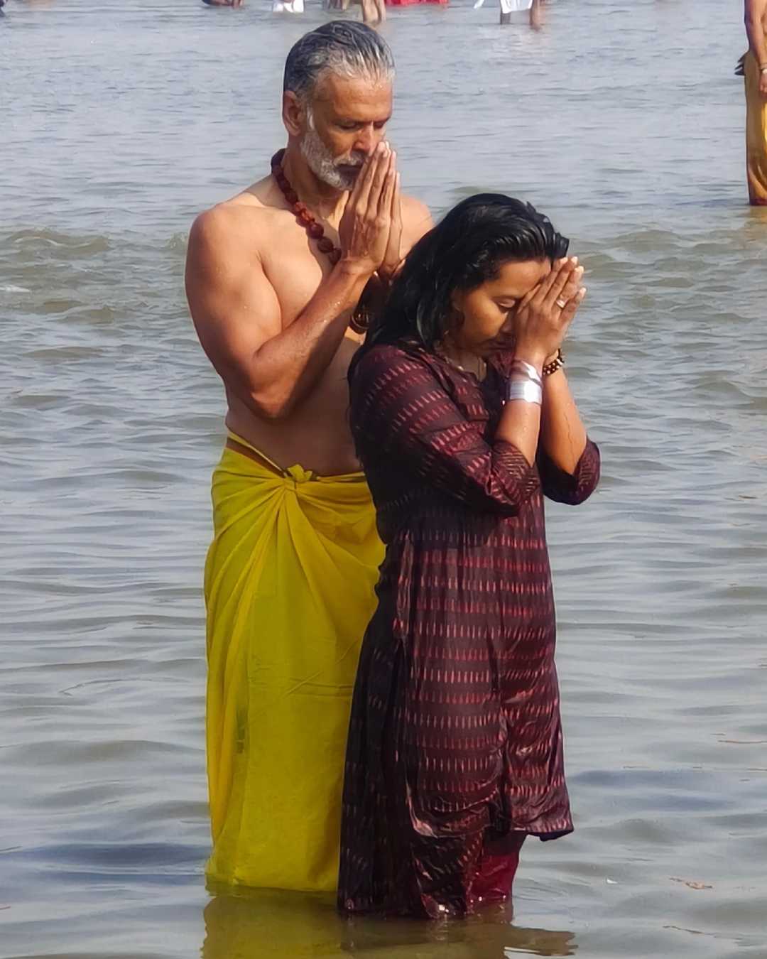 Actor-model Milind Soman recently attended the Mahakumbh Mela at Prayagraj, Uttar Pradesh, with his wife Ankita Konwar to mark the occasion of Mauni Amavasya. Here’s a look at their pictures.