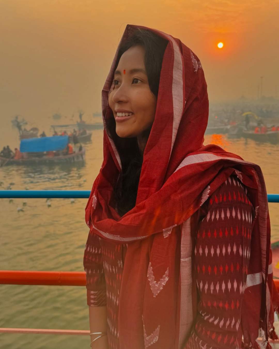 Ankita, who is a flight attendant, wore a maroon printed kurti and leggings for the festival. Milind, on the other hand, went for a traditional look in a yellow garment wrapped around his waist. “Blessed to be at the Mahakumbh with @ankita_earthy on the very special day of mauni amavasya,” Milind wrote.