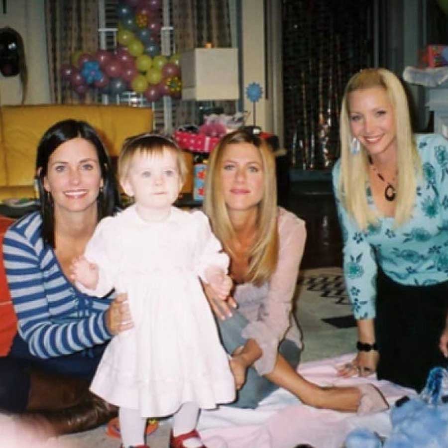 Coutrney Cox (Monica Geller), Aniston and Kudrow with Baby Emma, played by twins Cali and Noelle Sheldon.