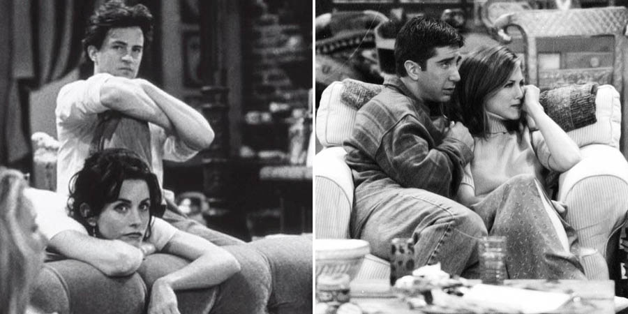 Onscreen couples Chandler-Monica (left) and Ross-Rachel (right).
