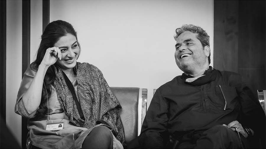Tabu and Ali Fazal engage in an intense conversation while Vishal Bhardwaj looks on.