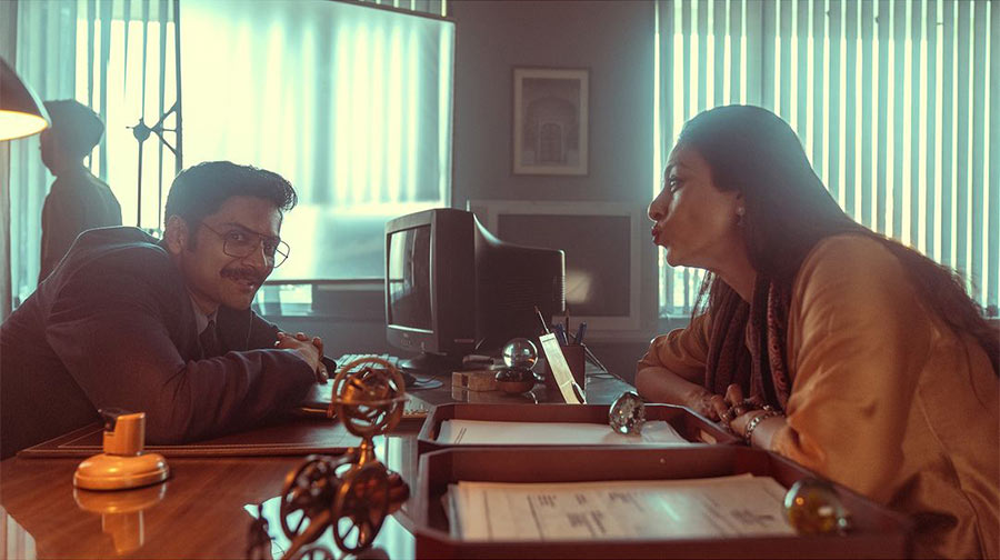 Ali Fazal, who plays the money-hungry R&AW agent Ravi Devilal Mohan, in a scene with Tabu.
