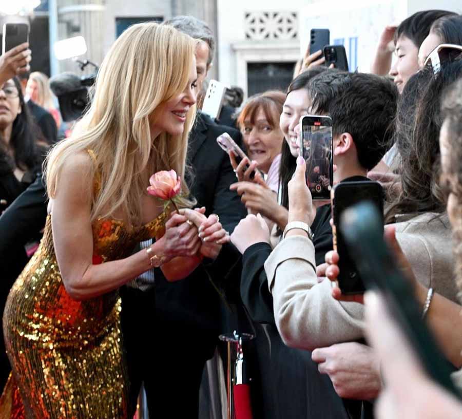 A candid shot shows Kidman greeting her young fans at the event on Saturday.