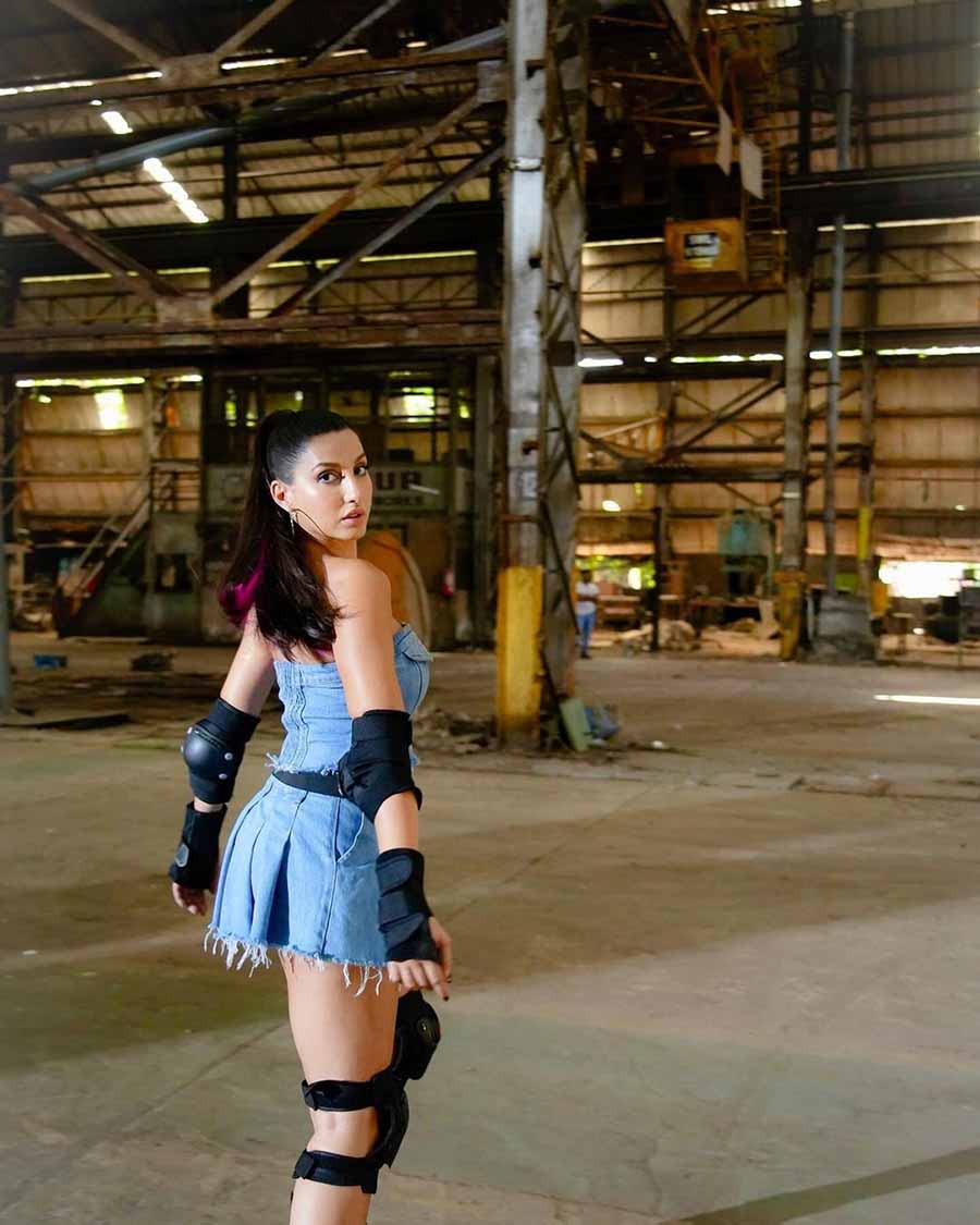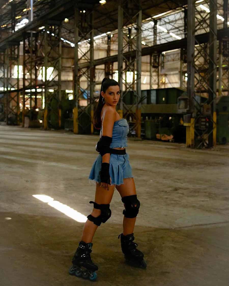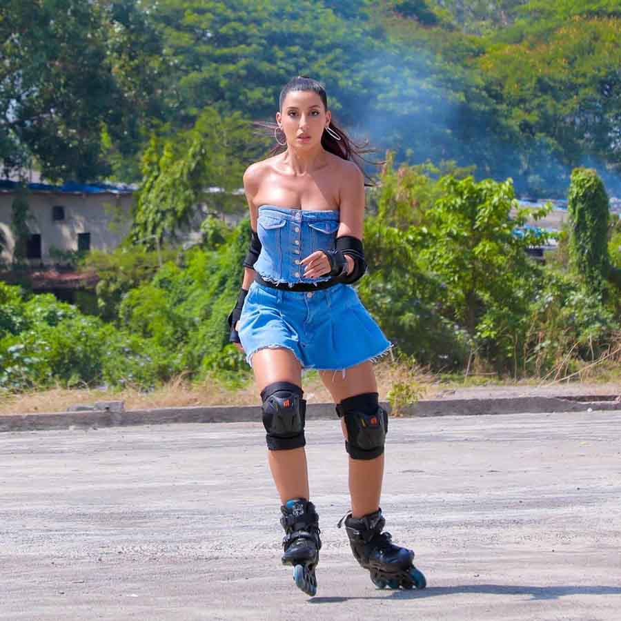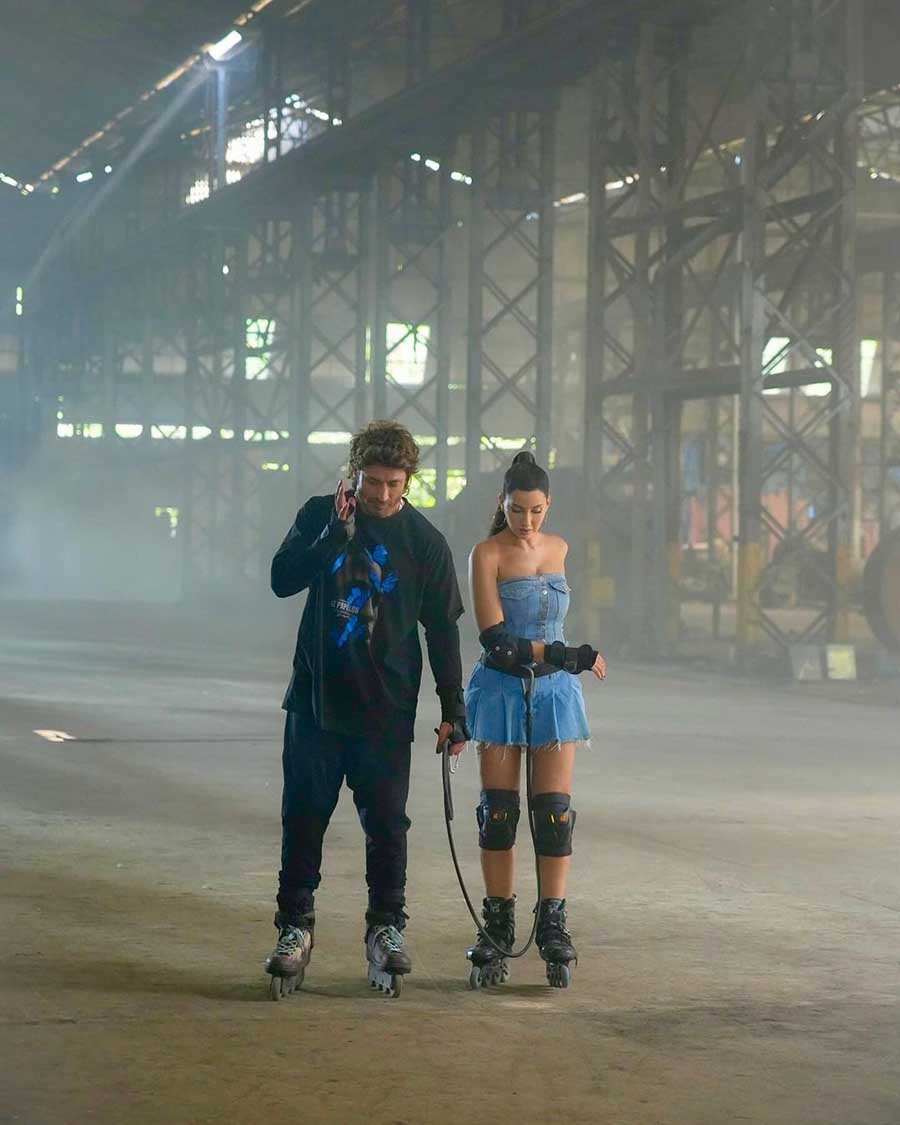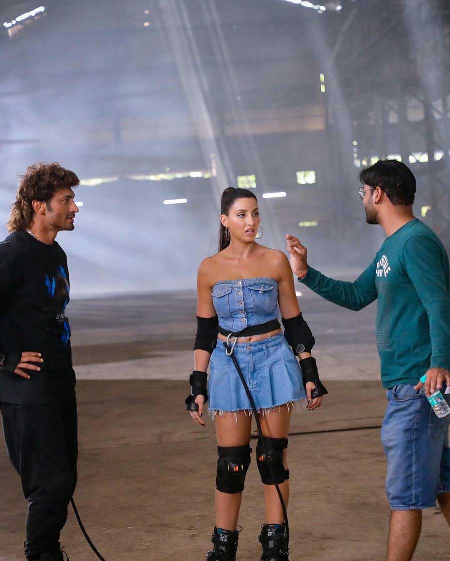 Both Nora and Vidyut looked ready to roll in their roller skates in the presence of a cinematographer on the sprawling set.