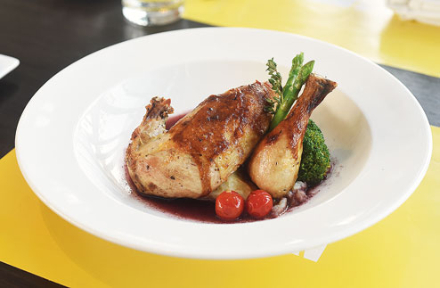 Roast Chicken with Red Wine Sauce, a signature dish by chef Thomas Joseph