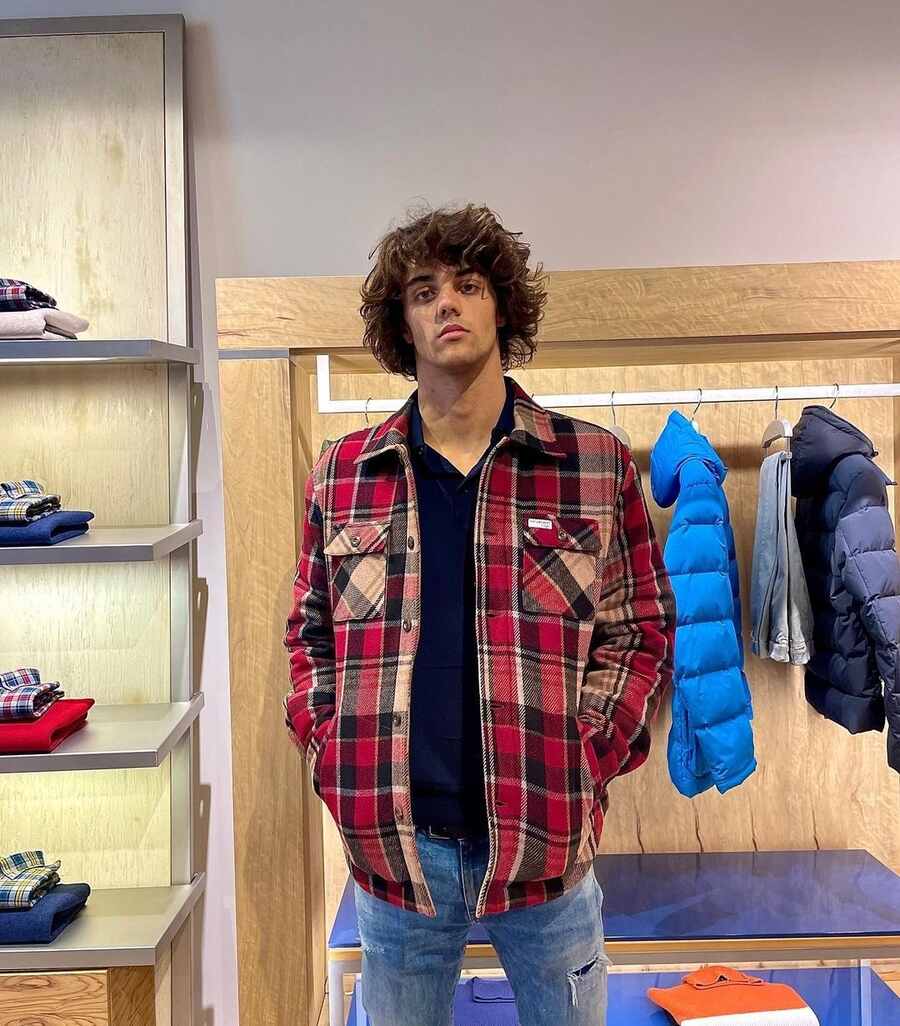 This post from 2022 has Ceccon taking a break from shopping, looking quite the boy-next-door with a tousled mop and in plaid shirt and jeans.