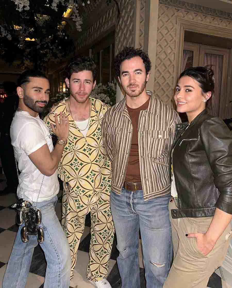 Kevin, Nick and Orry were joined by actor Ahan Shetty’s ex-girlfriend Tania Shroff who sported a dark brown leather jacket coupled with beige pants.