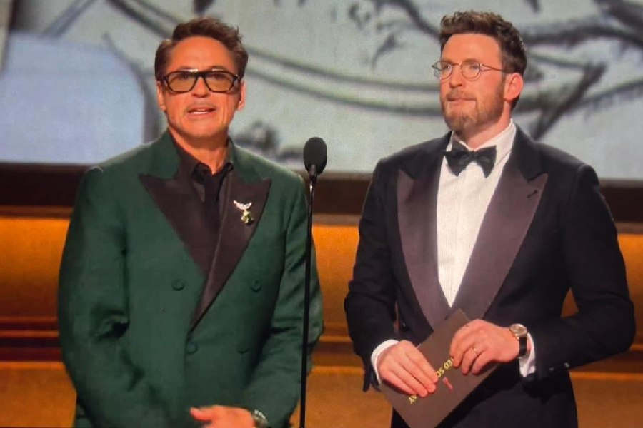 It's time for a Marvel reunion on Oscars stage and Robert Downey Jr. and Chris Evans, aka Iron Man and Captain America, are here to present the awards in screenwriting. They even do a small banter skit.