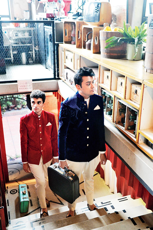 Ever since Parekh & Singh have made it to the international music scene, their signature look — the solid coloured suits and all — has been quite an eye-catcher. When we got them to do a fashion shoot for t2oS, we got to know just why the boys have made a mark with their style. From their hairstyle right down to their socks, Nischay, 24, and Jivraj, 30, had it all sorted out. Shooting for Nischay’s mom Sumona Parekh’s debut menswear line inspired by Parekh & Singh, the duo walked into Bodega Cantina-Y-Bar, the shoot venue, with the looks all worked out in their heads. Post-shoot, when they told us that “we like to have control over how we look”, we could totally see what they meant.