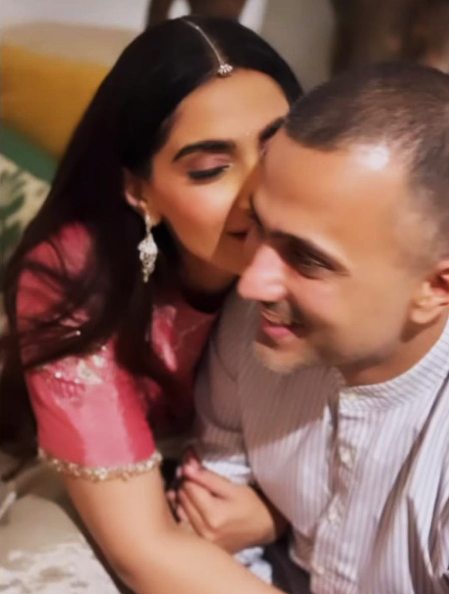 Sonam Kapoor shared photo of hers planting a kiss on husband Anant Ahuja’s cheeks during the celebrations.