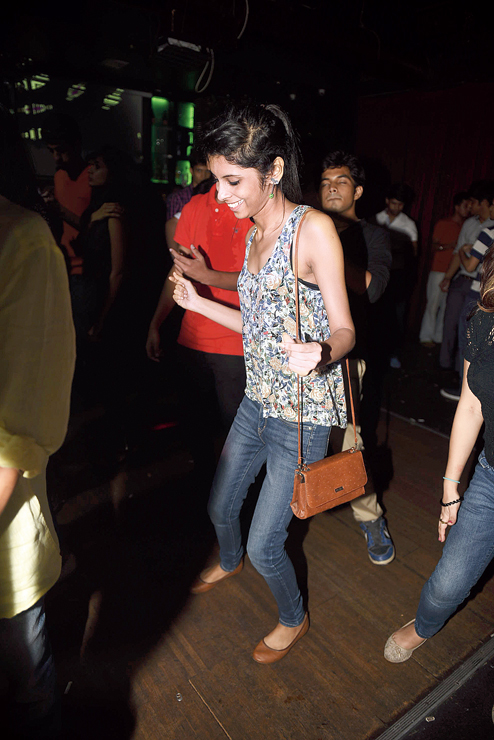 Very rarely would you spot Rusha Roy wearing a dainty short dress and tripping on music in a nightclub. The party regular was spotted at Privy in denims, a floral sleeveless top and ballerina flats. “I do not party to grab attention. For me, it’s always comfort over style and I never like to dress up,” said the MBA student who chooses heels over and flip-flops because “they are easy to dance in all night”.