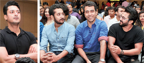 (L-R) Jisshu Sengupta, Parambrata Chattopadhyay, Abir Chatterjee and Soham at the trailer launch of For Cinema Only.