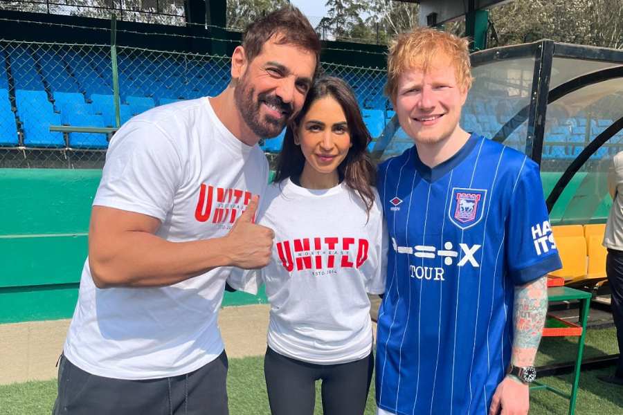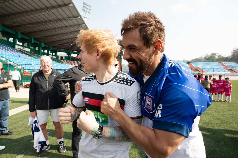 The Thinking Out Loud singer bonded with John Abraham over football. The 52-year-old actor, who will be next seen in The Diplomat, is an Ipswich Town F.C. fan, Sheeran said. In the picture, the duo can be seen in football jerseys.