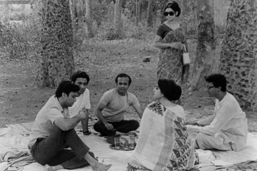 Every picnic comes with its own set of fun-filled activities. Some might enjoy a quiet spot with a book under the comforting shade of a tree, while others might gather for a lively football match. One of the most iconic picnic scenes is the memory game from the sequence in Aranyer Dinratri, directed by Oscar-winning filmmaker Satyajit Ray. This sequence masterfully reflects knowledge, wit, and social dynamics. Adapted from Bengali author Sunil Gangopadhyay’s novel of the same name, the story follows a group of urban men from Calcutta — played by Soumitra Chatterjee, Subhendu Chatterjee, Samit Bhanja, and Rabi Ghosh — as they head out for a weekend in the wilderness. Also starring Sharmila Tagore and Kaberi Bose, the picnic scene (which is not part of the original novel) features the friends joining the women in the middle of the wilderness to enjoy a picnic while playing a party game that requires both memory skills and a grasp of literary, political, and cultural knowledge.