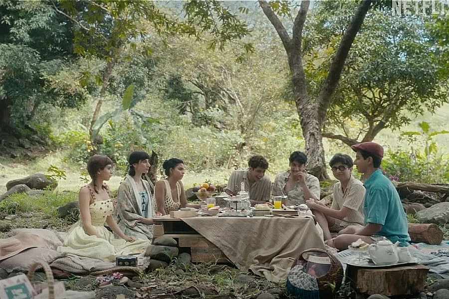 Zoya Akhtar’s 2023 Netflix film The Archies, starring Agastya Nanda, Khushi Kapoor, Suhana Khan, Vedang Raina, Mihir Ahuja, Aditi "Dot" Saigal and Yuvraj Menda, is set in a fictional 1960s hilly town of Riverdale. It offers a quintessential picnic scene, with the best company one can ask for — friends. The scene portrays the joy and camaraderie of being young and free together amidst the beautiful Shimla outdoors. With picnic baskets in tow, the Archies gang take a fun-filled bus ride to a nearby spot with a gorgeous waterfall and lay an elaborate picnic spread of fruit, sandwiches, juice, and dessert platters. They play truth and dare, share delicacies, sunbathe, swim, and share their joy and woes, paying a big homage to the days of youthful idleness.