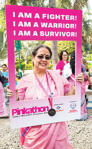 “After your chemotherapy-radiation protocol, in most of the cases I have seen, you tend to bloat up. So, you need to do something consciously about it. You need to take your fitness, lifestyle and how you look at yourself very seriously. You need to reinvent yourself. I am my fittest now! Be there at Pinkathon” —