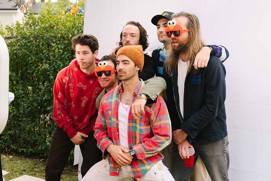 Nick posed for a picture with brother Joe Jonas and other band members of The Jonas Brothers during the celebrations.
