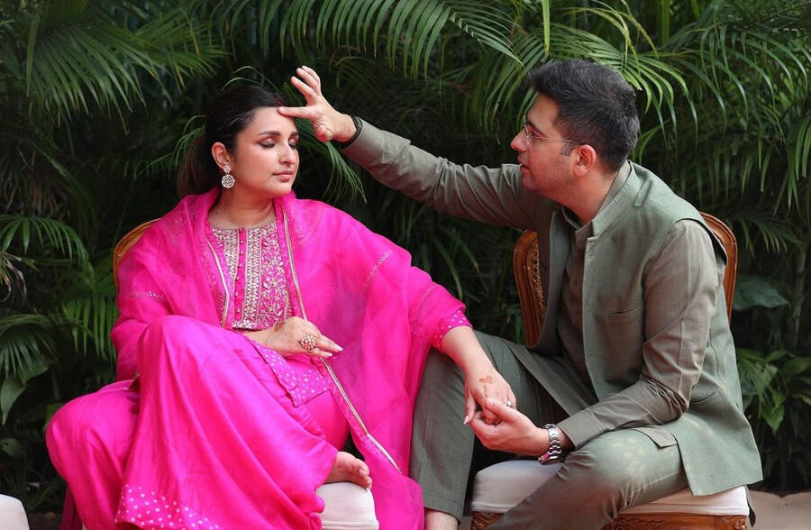 Parineeti Chopra looked gorgeous in a pink salwar suit, while her husband, Raghav Chadha, sported an olive-green waistcoat. The couple, who exchanged vows on September 24 last year, celebrated the festival with their close ones. On the work front, Parineeti was last seen in the Imtiaz Ali-directed Netflix biopic Amar Singh Chamkila.