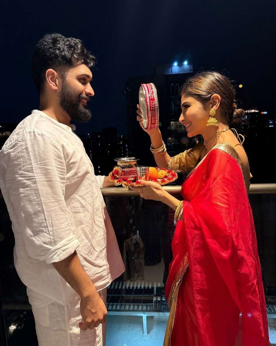 Blackout actress Mouni Roy also shared pictures with her husband Suraj Nambiar, whom she had married on January 27, 2022, in Panaji, Goa. Mouni wore a bright red sari with golden borders, while Suraj opted for a white kurta and white trousers. “Perfectly splendid,” the actress captioned her carousel on Instagram.