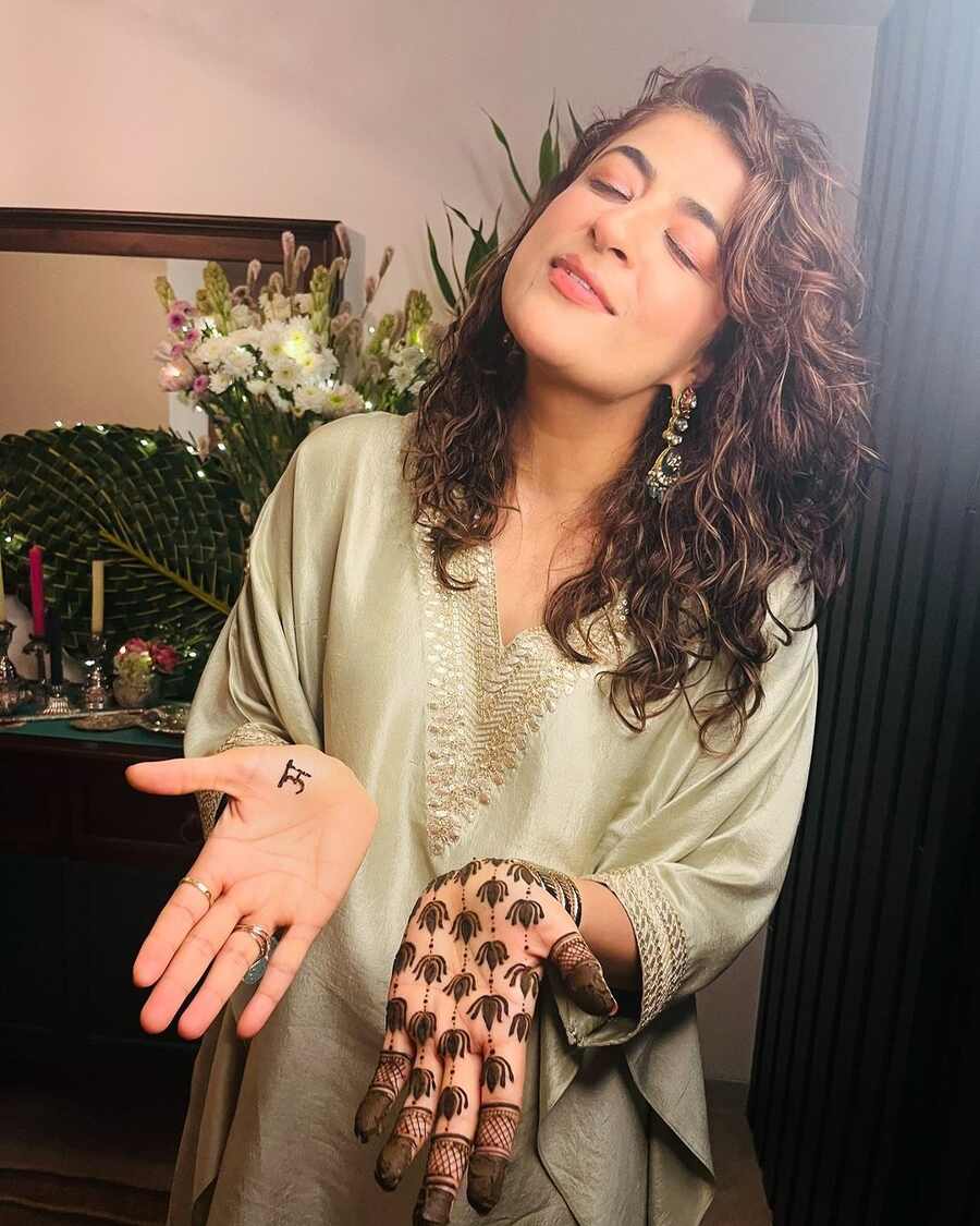 Filmmaker-author Tahira Kashyap Khurrana shared pictures of her mehendi on social media. She noted that her husband, actor Ayushmann Khurrana, was away on Karva Chauth as he is currently in Manali shooting for his next project. Tahira recently grabbed headlines with the release of her maiden feature film Sharmajee Ki Beti starring Sakshi Tanwar, Divya Dutta, Vanshika Taparia, Arista Mehta and Saiyami Kher.