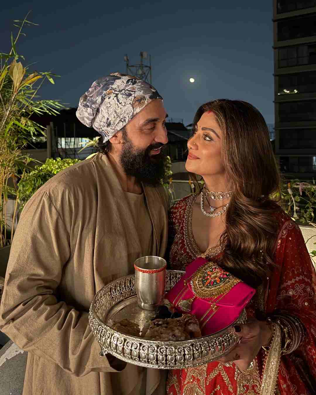 Actress Shilpa Shetty Kundra and her husband, Raj Kundra, celebrated Karwa Chauth with Bollywood celebrities Sanjay Kapoor and Chunky Panday. “Blessed,” Shilpa wrote alongside their pictures.