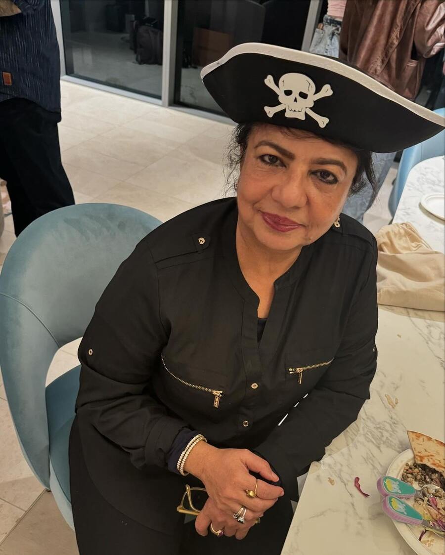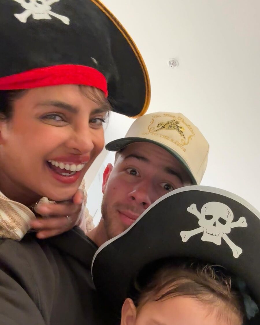 Priyanka smiled for a selfie with Nick and Malti. In the photo, Priyanka and her daughter wore pirate hats, while Nick peeked from behind, sporting a white baseball cap.