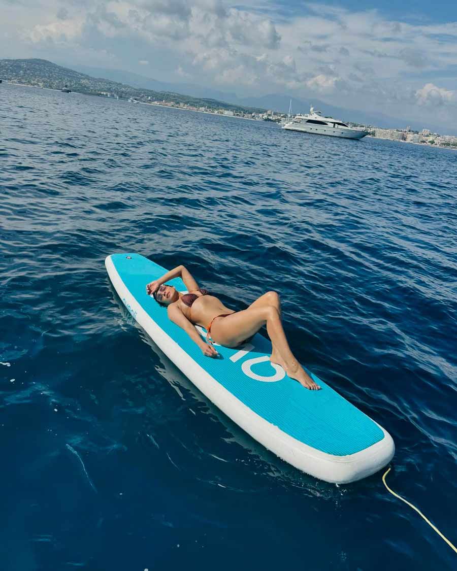 Priyanka, who recently wrapped up shooting for her upcoming actioner The Bluff, floated on a surfboard in the vast ocean.