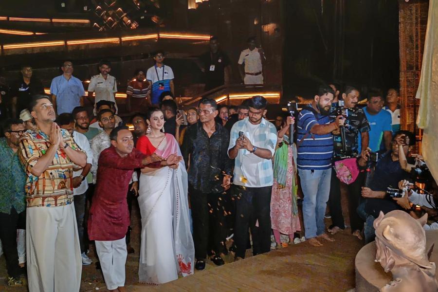 Actors Jisshu Sengupta and Darshana Banik inaugurated the Puja pandal of the Dakshinpara Durgotsab Committee, Baguiati.