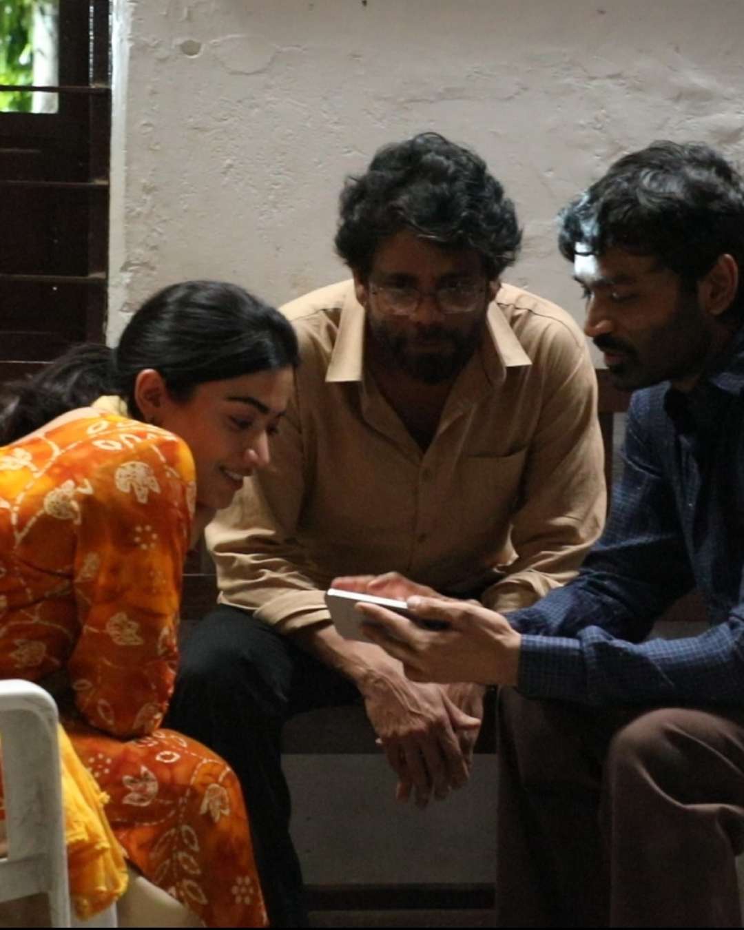 Rashmika, who played the character Sameera in the film, was engrossed in a conversation with her co-actors, Dhanush and Nagarjuna Akkineni in one of the photos.
